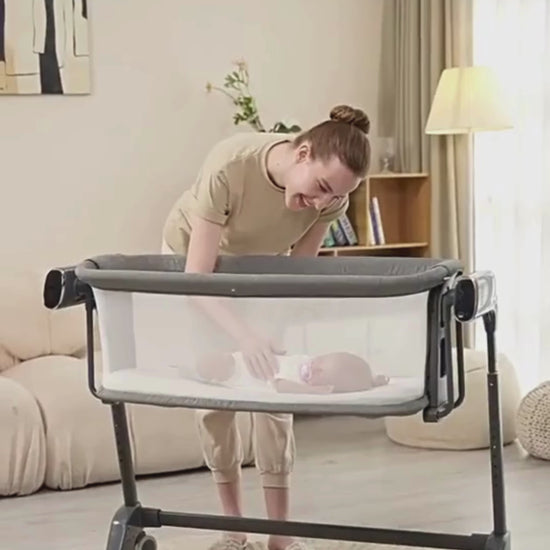Provide your newborn with ultimate comfort and safety with the 3-in-1 Electric Baby Bassinet. Designed to function as a bedside sleeper, stand-alone bassinet, and portable playard, it adapts seamlessly to your baby’s needs.