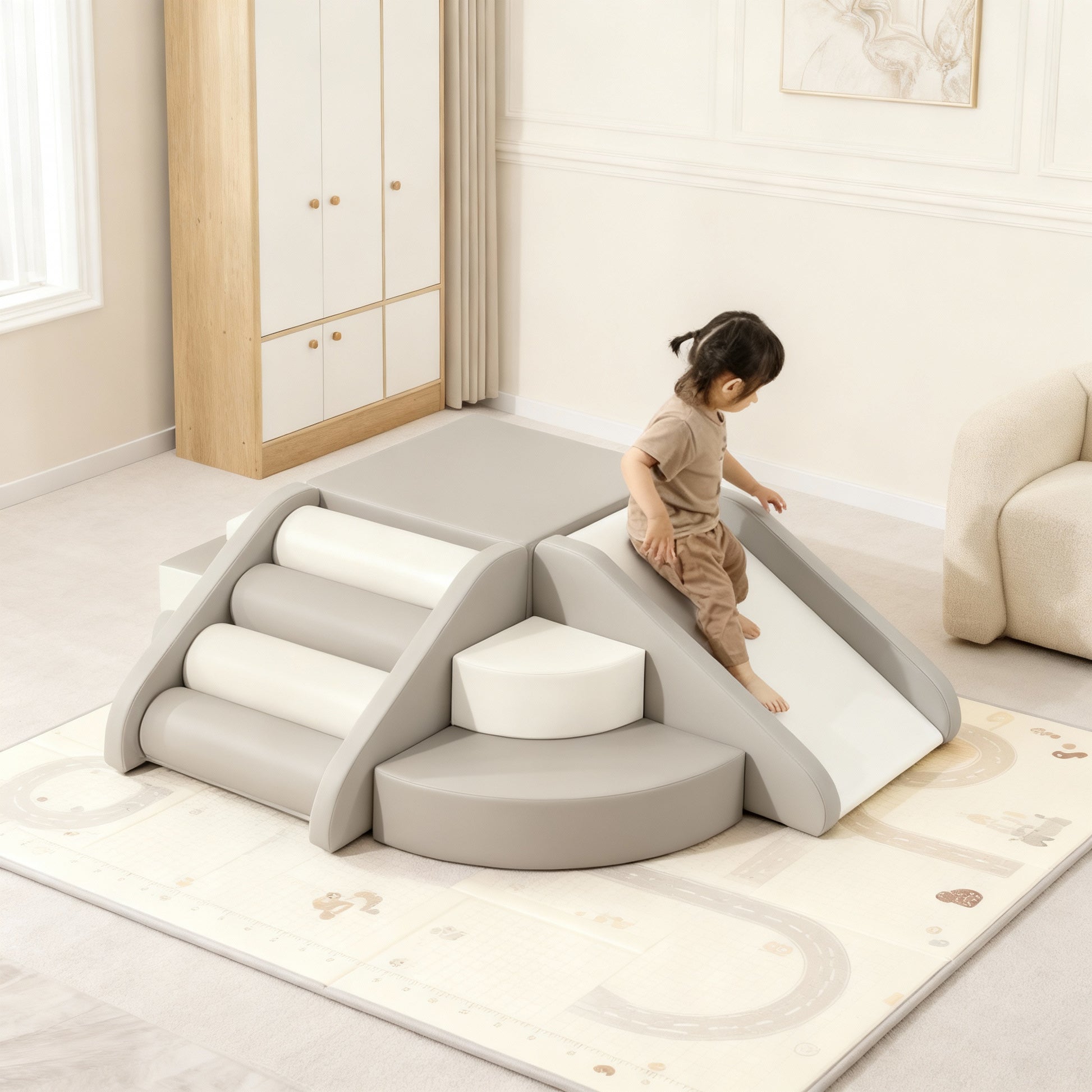 Perfect for playrooms, nurseries, and early learning spaces, the minimalist design in neutral beige and gray tones complements any modern interior. The surface is antibacterial, waterproof, and wipe-clean, ensuring hygiene and long-lasting use.
