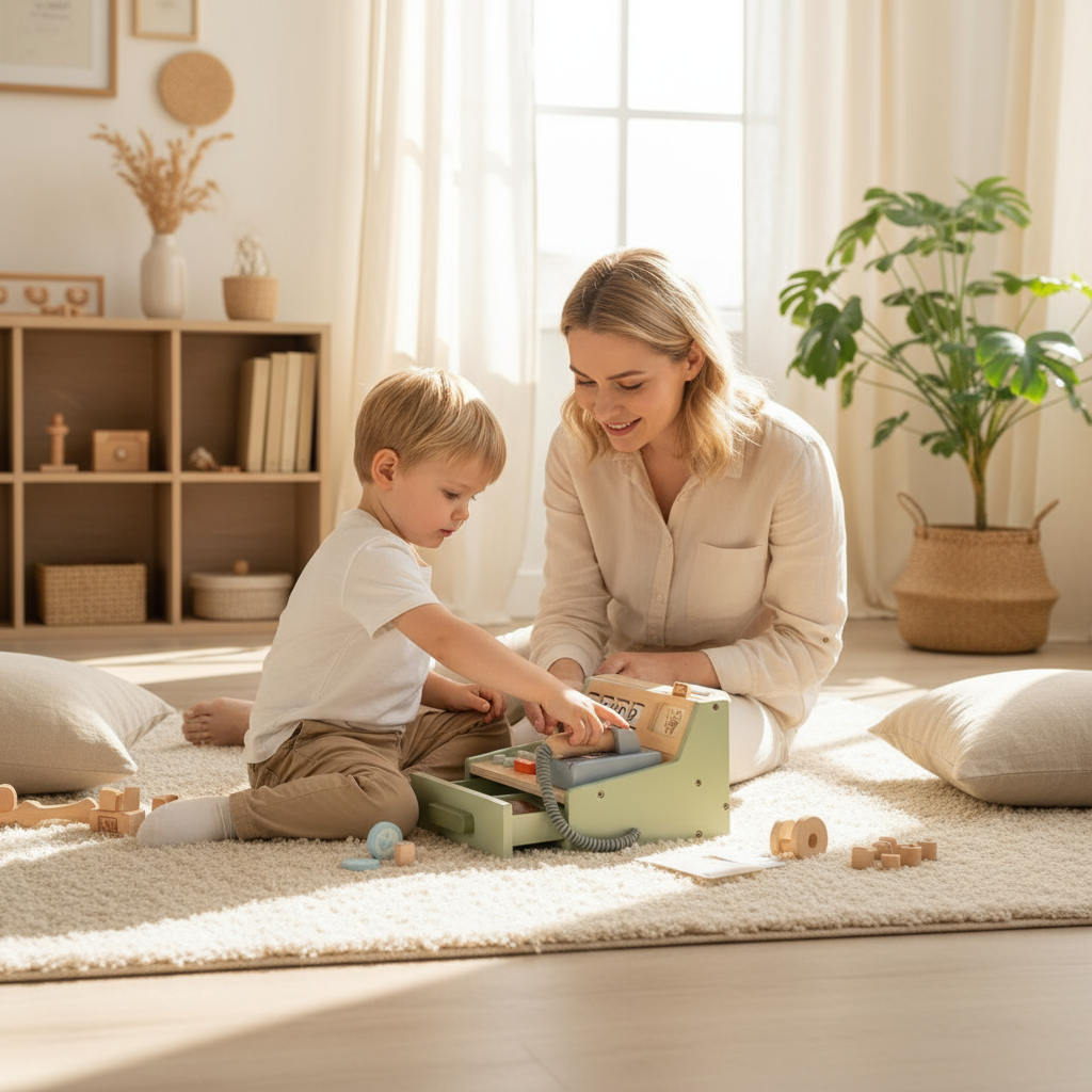 PerfectBaby™ Wooden Cash Register – Montessori Pretend Play Toy